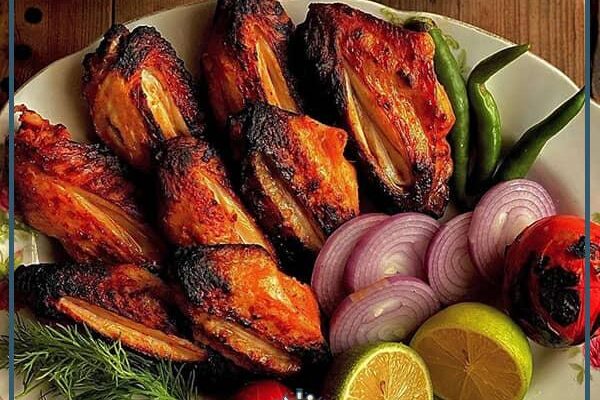 برای تهیه بال کباب بهاراتی خوشمزه، ابتدا کره را در یک کاسه فلزی ذوب می کنیم. سپس لیمو ترش را نصف کرده و آب آن را صاف می کنیم. در ادامه، آب لیمو ترش را با پاپریکا، پودر بهاراتی، سس تند و مقداری نمک و فلفل سیاه مخلوط می کنیم تا بافت یکدست شود. در صورت نیاز، چند قطره آب جوش اضافه می کنیم تا بافت کمی شل شود. سپس روی بال ها چند شکاف ایجاد می کنیم و آنها را به سیخ می کشیم. زغال های درون منقل را یکدست روشن کرده و سیخ ها را روی آن قرار می دهیم. حرارت زیر بال ها باید کاملا ملایم باشد. در طول پخت، کره و سس بهارات را به طور مداوم روی بال ها می مالیم و سیخ ها را می چرخانیم تا بال ها به صورت یکدست کباب شوند. در صورت تمایل، می توان گوجه فرنگی و فلفل سبز را نیز به سیخ کشید و در کنار بال ها کباب کرد. در نهایت، بال کبابی را به همراه گوجه و فلفل کبابی درون ظرف مورد نظر قرار داده و با نان یا برنج سرو می کنیم.