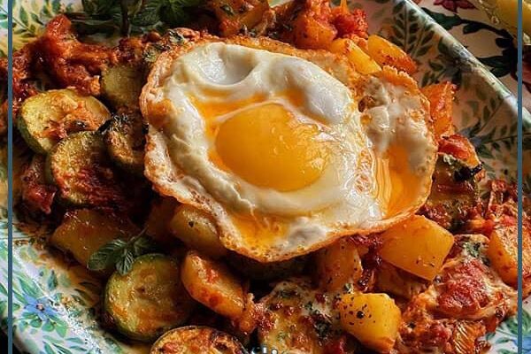در نهایت، تخم مرغ ها را به مخلوط اضافه کرده و اجازه می دهیم تا تخم مرغ ها خودشان را بگیرند. کدو بره را همراه با نان تازه و سبزی خوردن سرو می کنیم.